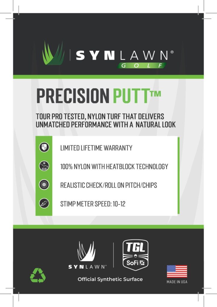 Tour-pro tested and TGL-approved Precision Putt™ sets the gold standard for performance and durability. This nylon turf delivers true ball roll, consistent speed, and a natural appearance. With its durable fibers and embossed rubber backing, it excels in putting, receiving approach shots, and handling high-traffic areas like golf courses and TrampleZones™.