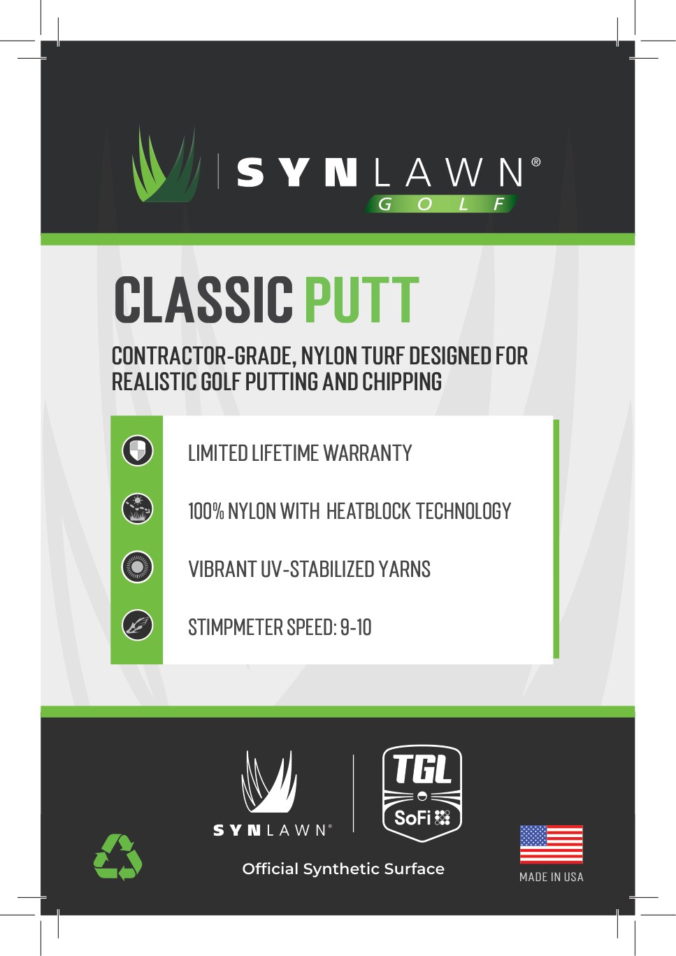 Tags for SYNLawn Golf Classic Pitch Tri. Each order includes 25 tags.
